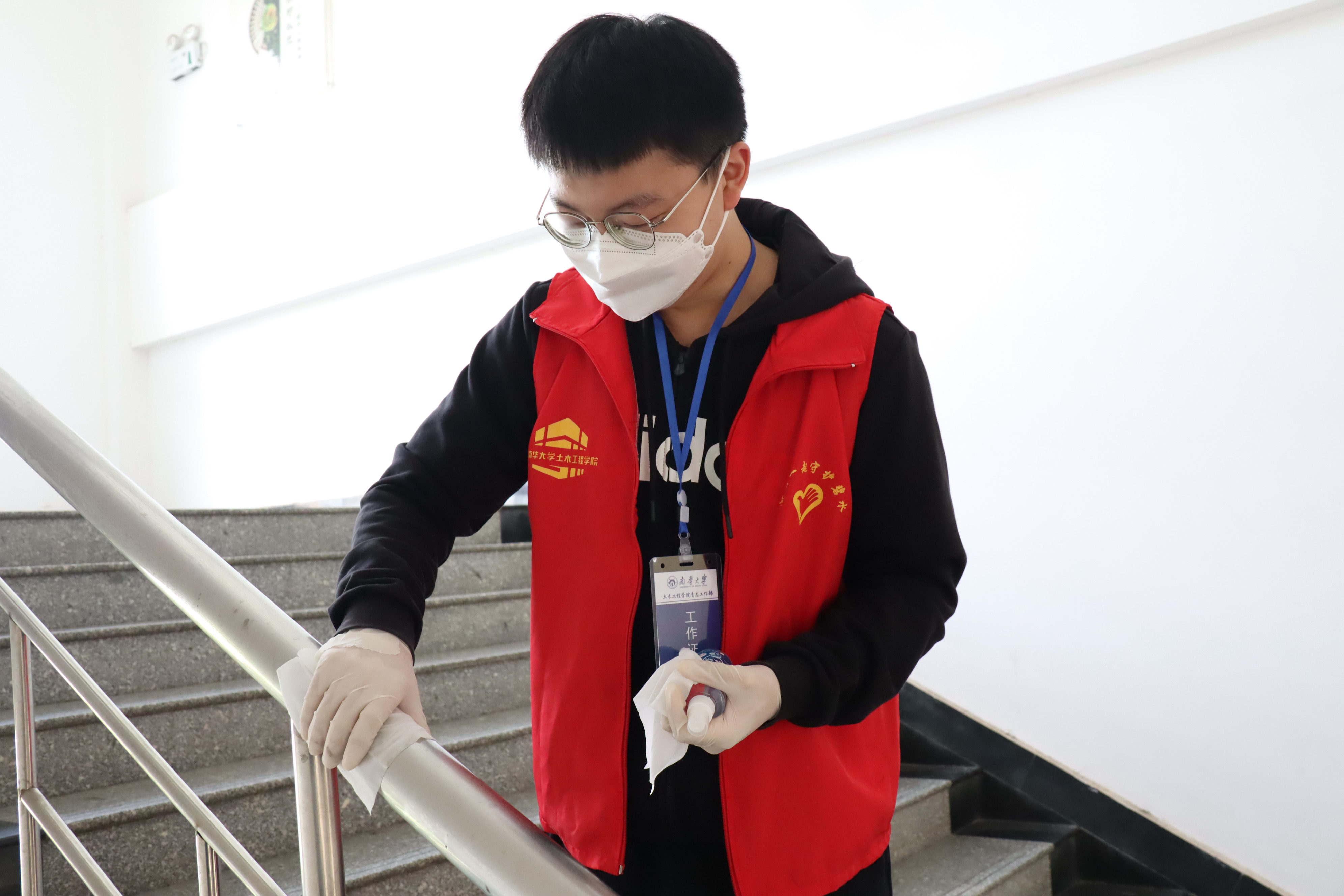 为响应“全民争做疫情防控践行者和宣传者”的国家号召,2022年4月2日中午12点,必赢76net官网青年志愿者工作部于南华楼进行清洁消毒工作,部分党员和学生干部参与此次活动。