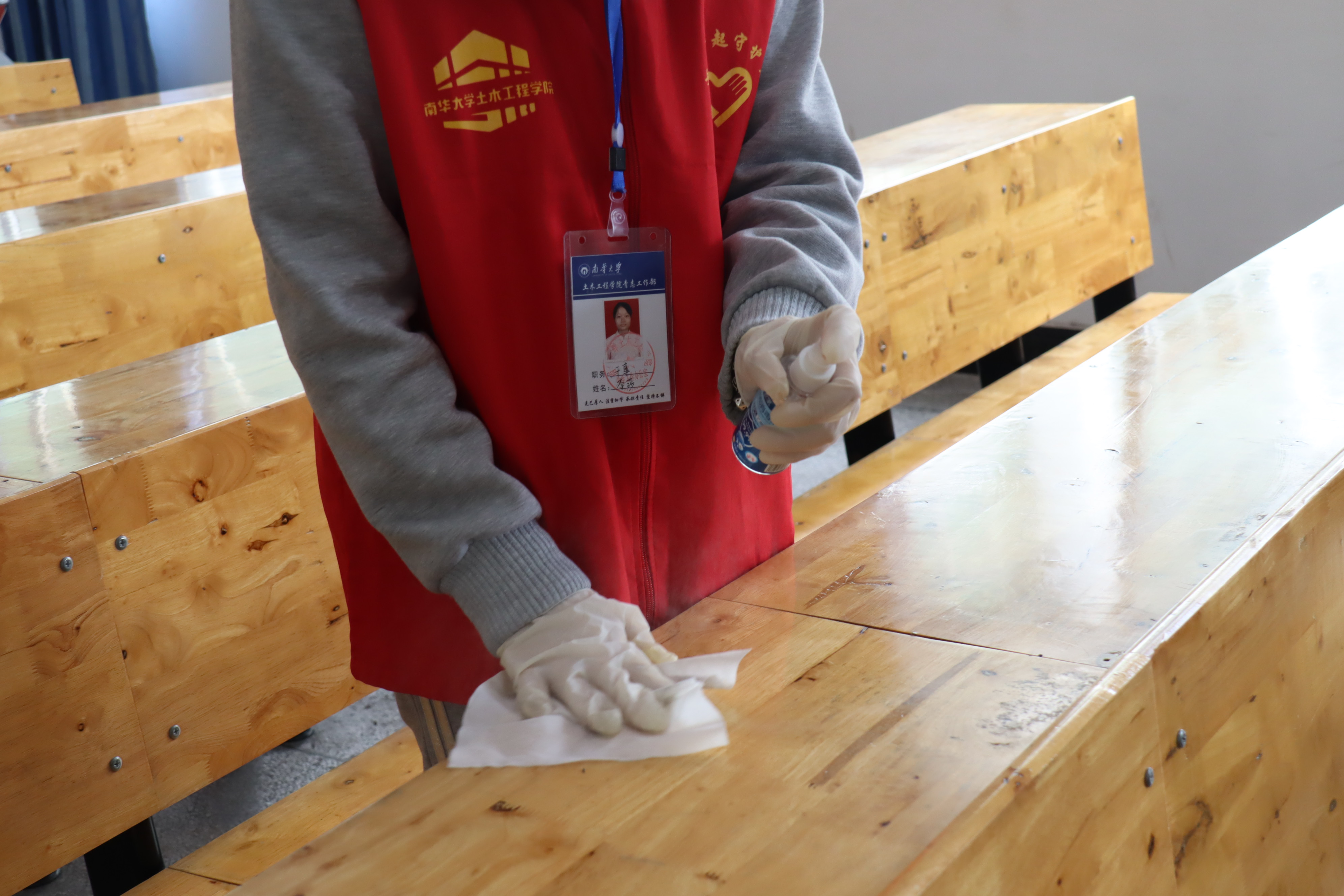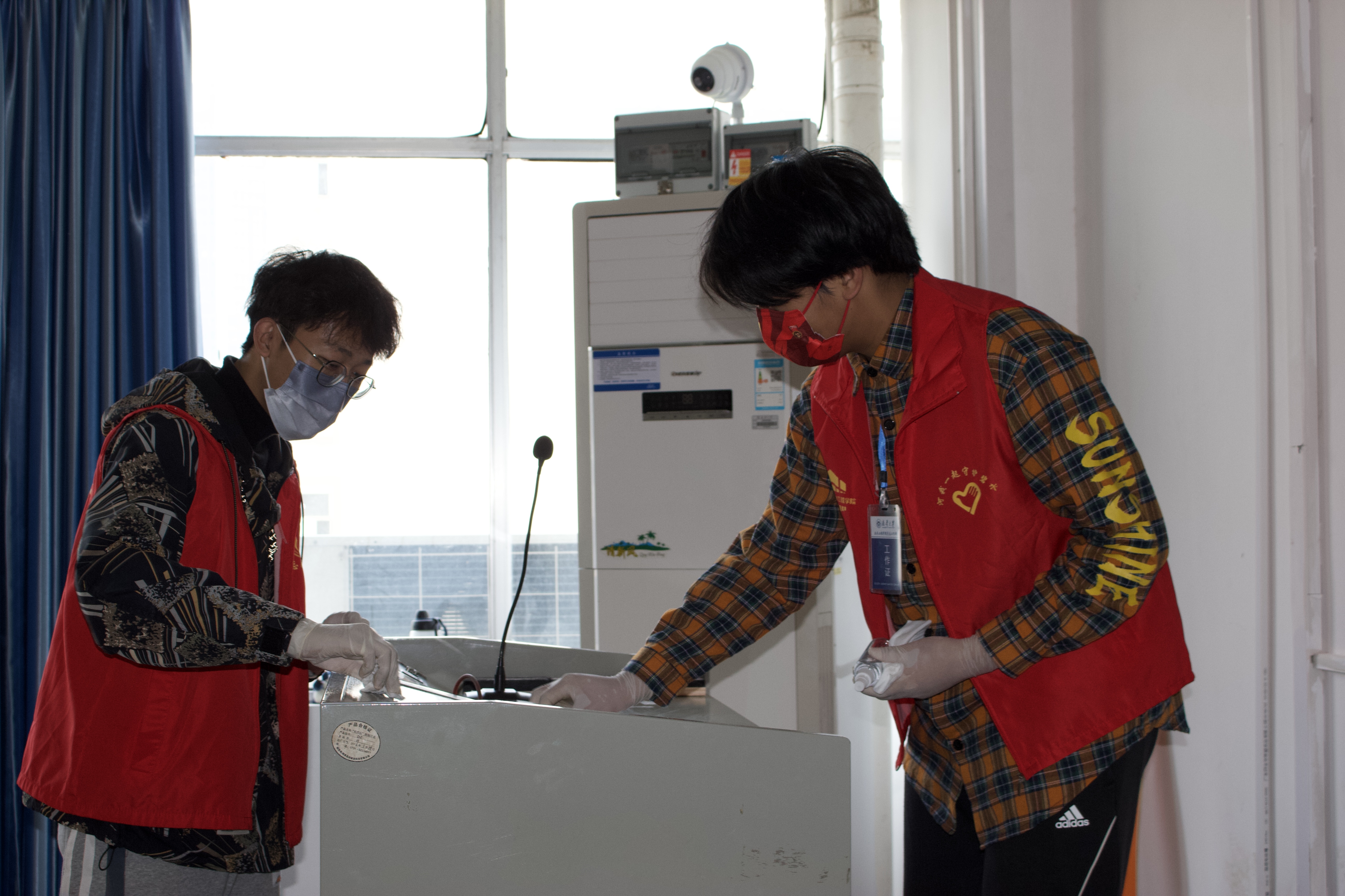 活动伊始,青年志愿者服务队组织志愿者们在南华楼后门集合,由负责人发放消毒工具并督促大家戴好口罩,做好自身防护。接着,青志部长周子轩对消毒工作中可能遇到的问题进行讲解,希望大家做到消毒全方位,不留死角。随后,志愿者们根据分组名单前往相应区域,对楼梯扶手,各教室门把手、桌子和讲台喷消毒水并用湿巾擦拭。志愿者们认真忙碌的身影在南华楼形成一道靓丽的风景线。在消毒完毕后,志愿者们回收处理一次性用品并合影留念。至此,活动圆满结束。