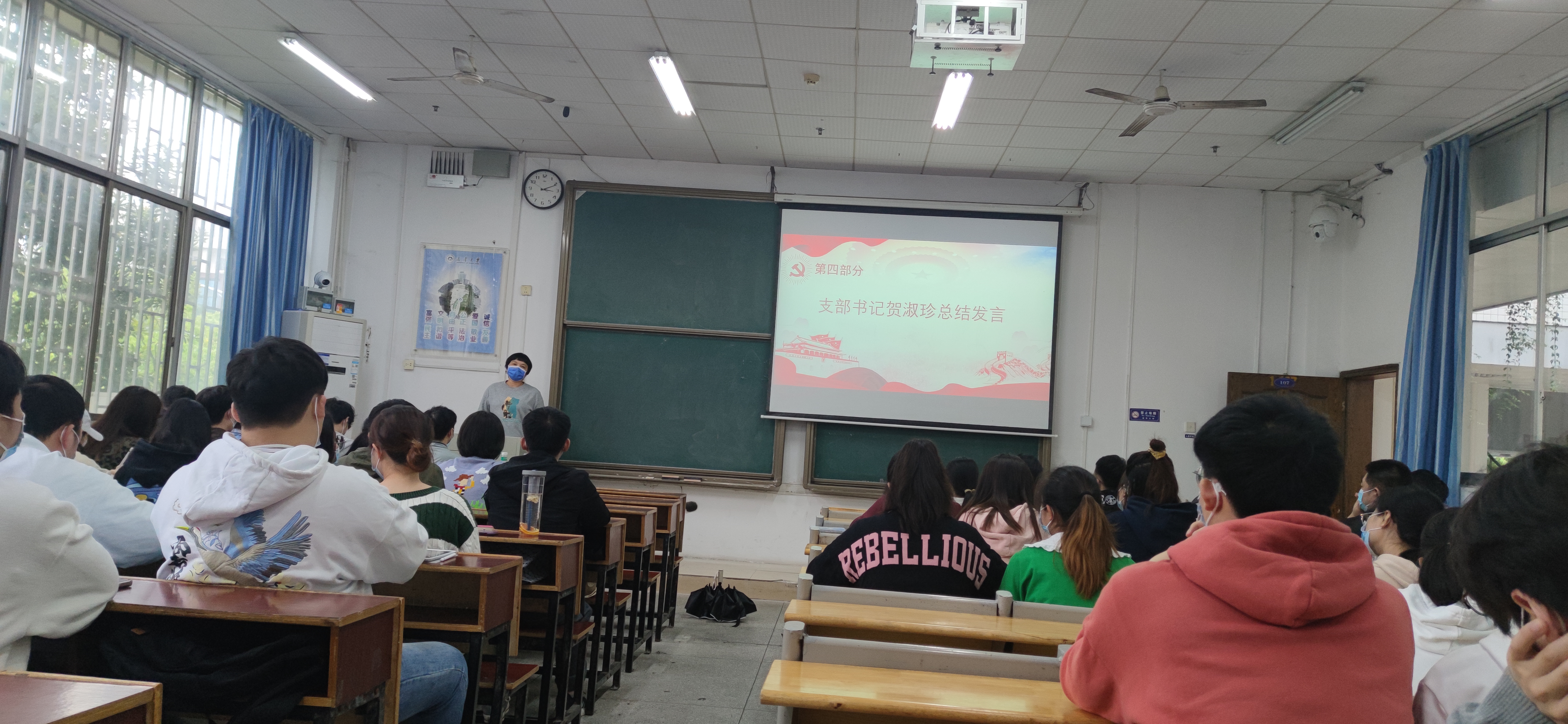 活动第四项,支部书记贺淑珍老师总结发言。贺老师指出,4月15日是国家安全教育日,而疫情从2020年一直延续至今,严重影响我们的正常生活甚至威胁着我们的安全。疫情防控是一场持久战,微小的疏忽,也可能导致疫情患者新增人数的暴涨。我们虽未处在疫情高风险地区,但也要居安思危,遵循“三不”要求,不网购、不外出、不点外卖,杜绝安全隐患,发挥先锋模范作用,共同坚守抗疫战线!