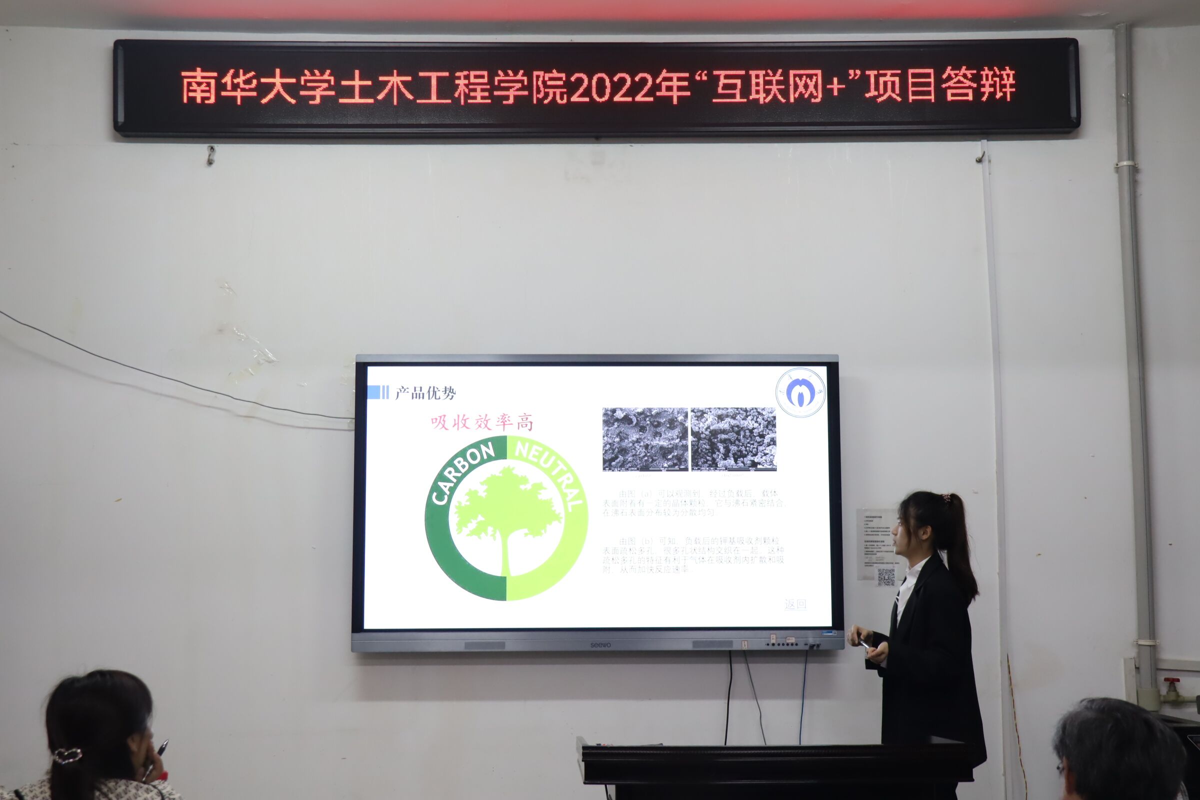 在主持人宣读了答辩要求及评分细则后,各团队按顺序进行答辩。答辩过程中,各团队用5分钟PPT的展示,向评委老师讲述他们的创新背景、创新理念、受众人群和营销计划。选手们自信洋溢、侃侃而谈,声音铿锵有力,尽显土木学子答辩之风采。答辩结束后,各评委老师针对答辩内容专业点评、耐心指导,并给予改进建议。