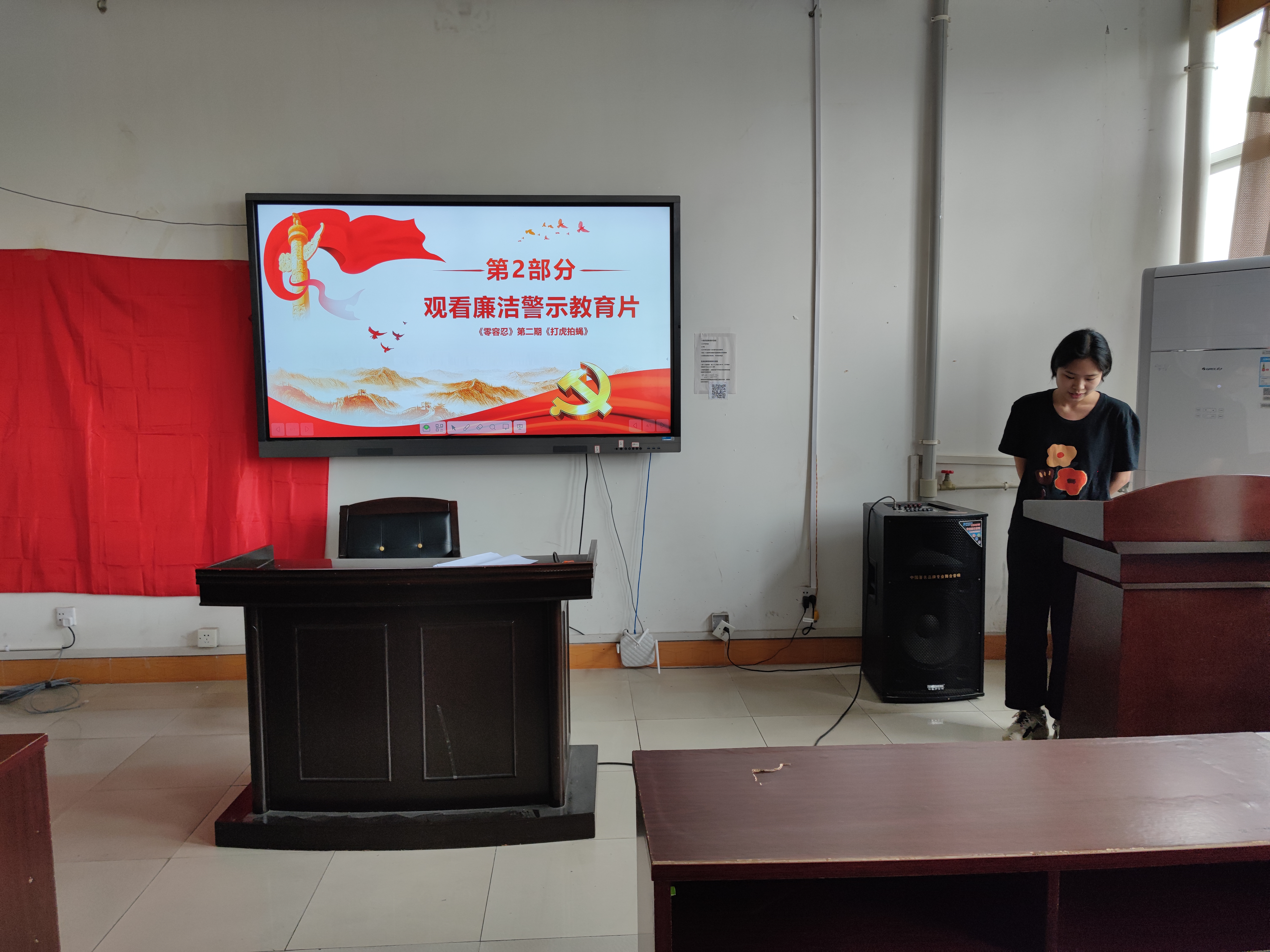 接着,全体党员一起观看廉洁警示教育片《零容忍-打虎拍蝇》,通过落马的“老虎”“苍蝇”的斑斑劣迹,为我们敲响了警钟,为反腐工作提出了更高的要求,自2018年扫黑除恶专项斗争工作开展以来,举国上下社会风气明显改善、政治生态更加风清气正、人民群众幸福感安全感得到提升,作为百年大党,青春洋溢、风华正茂,青年干部更要以蓬勃朝气、书生意气、一身正气接过党的伟大事业接力棒,在全面建设社会主义现代化国家征程中勇往直前。