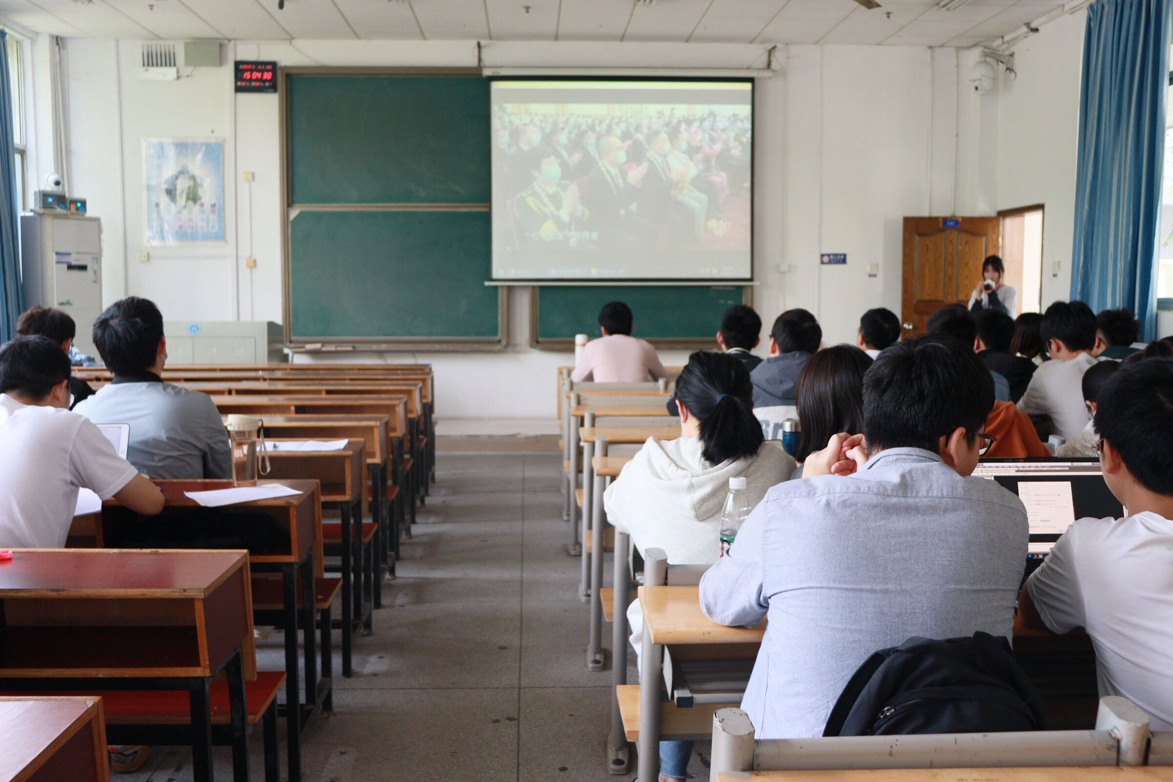 2022年5月16日15时40分,必赢76net官网分党校组织党员培训班全体学员于南华楼107教室集中观看建党100周年特别节目《榜样6》,共同聆听先锋故事,感受榜样力量。