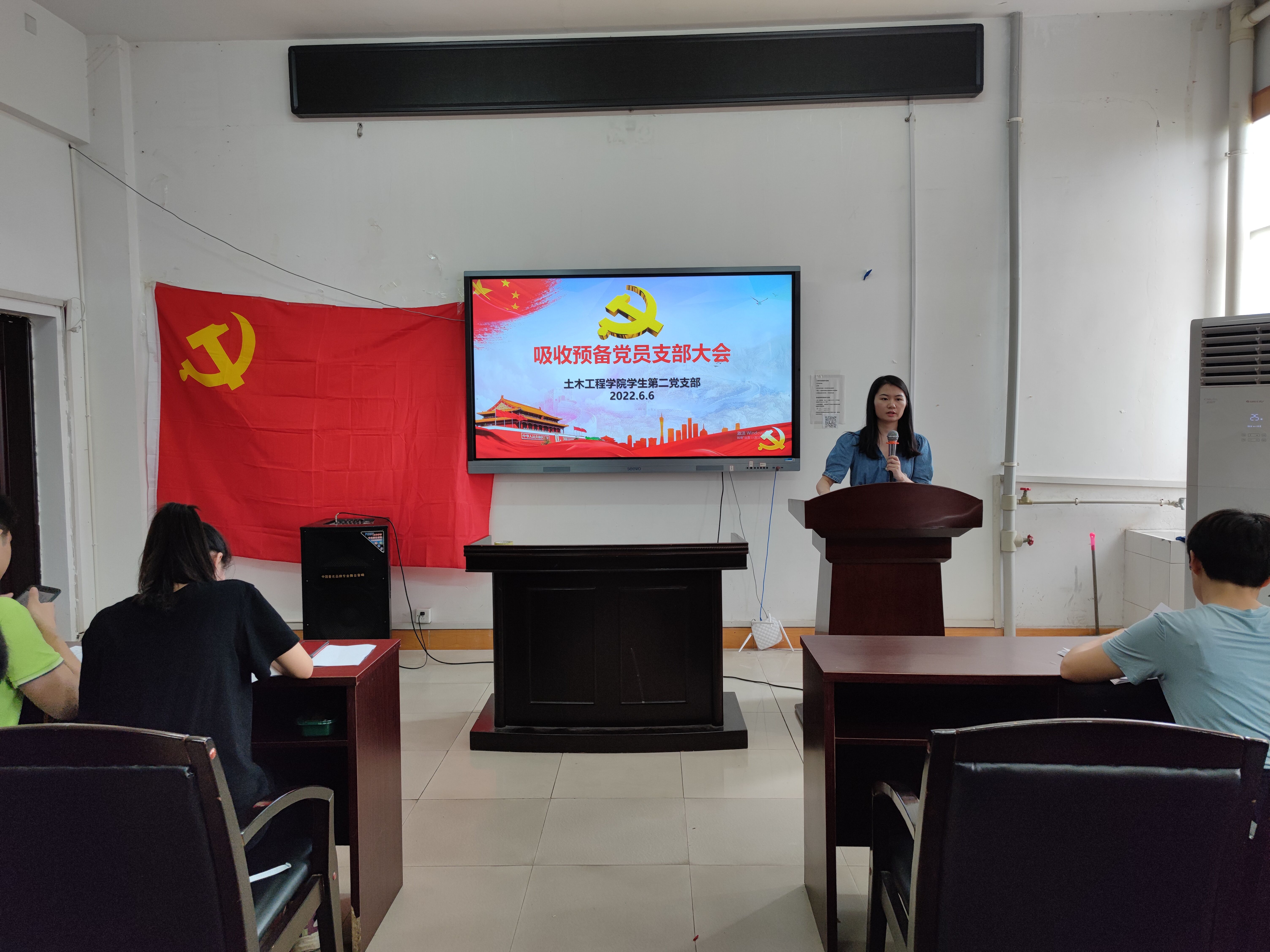 2022年6月6日15:00,必赢76net官网学生第二党支部在土木楼四楼会议室召开吸收预备党员暨支部委员补选大会。会议由支部副书记谢倩兰同志主持,全体党员、发展对象参与会议。