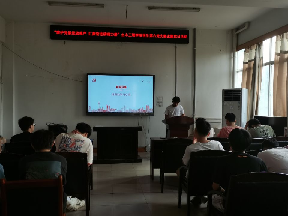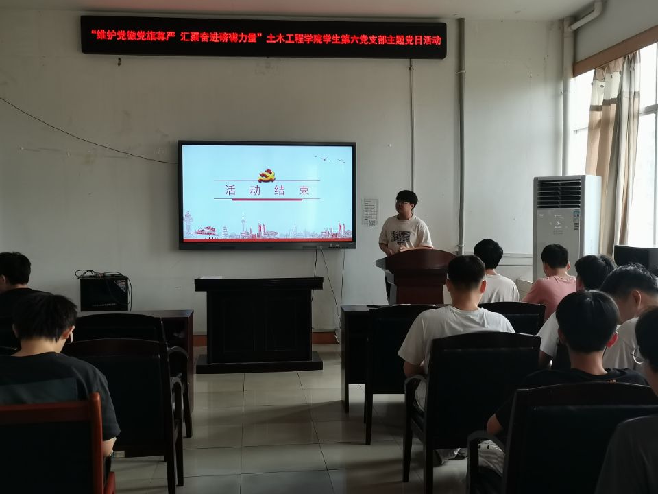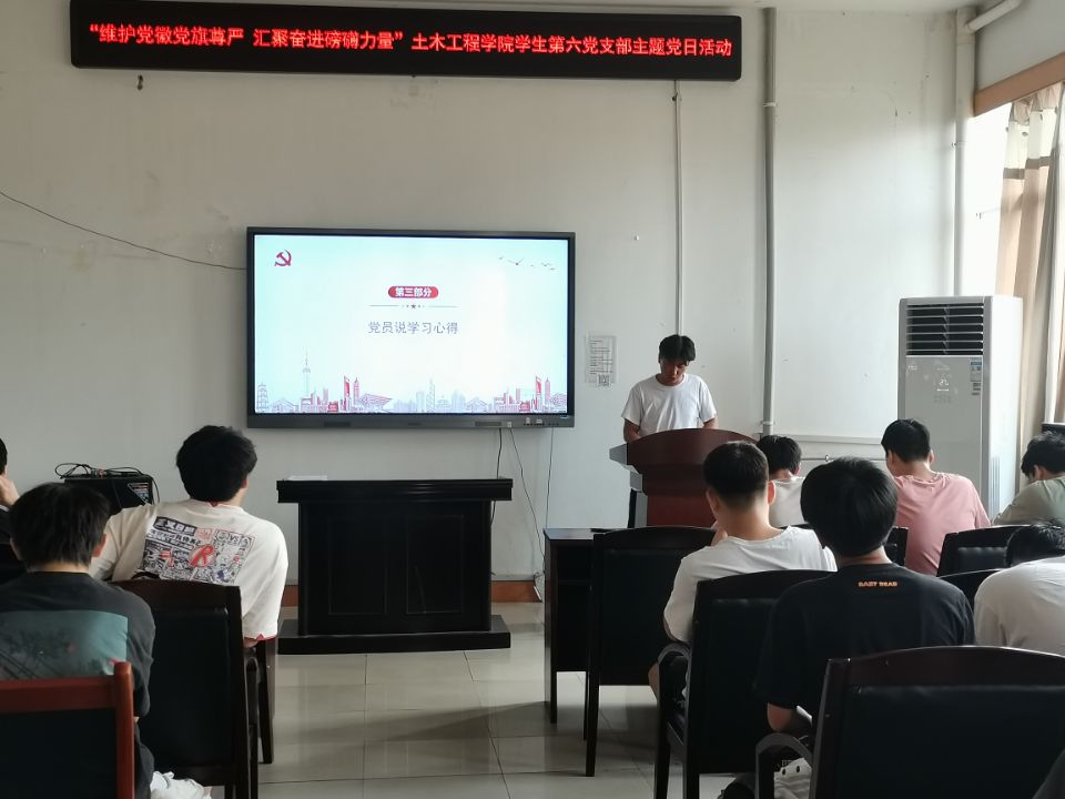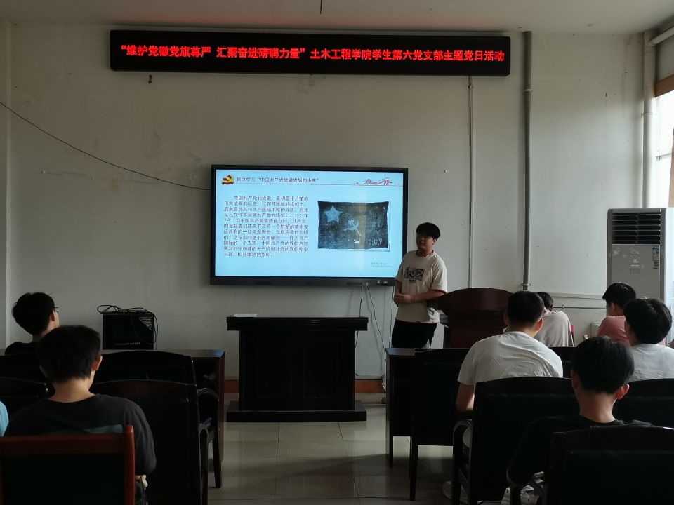 2022年6月27日15:00,必赢76net官网学生第六党支部于土木楼四楼会议室举行“维护党徽党旗尊严,汇聚奋进磅礴力量”主题党日活动。本次会议由宋章明同志主持,支部书记刘华老师及支部全体学生党员参加,共分四项进行。