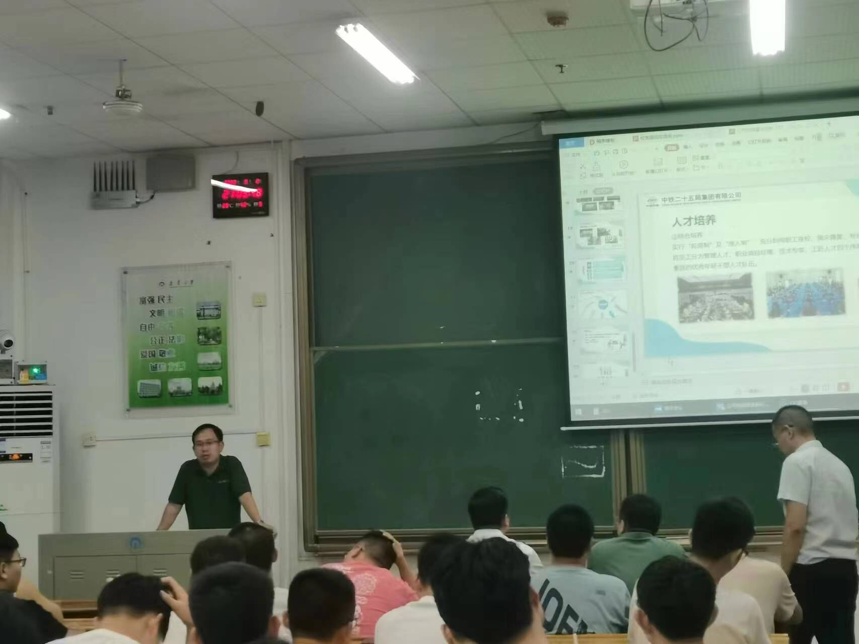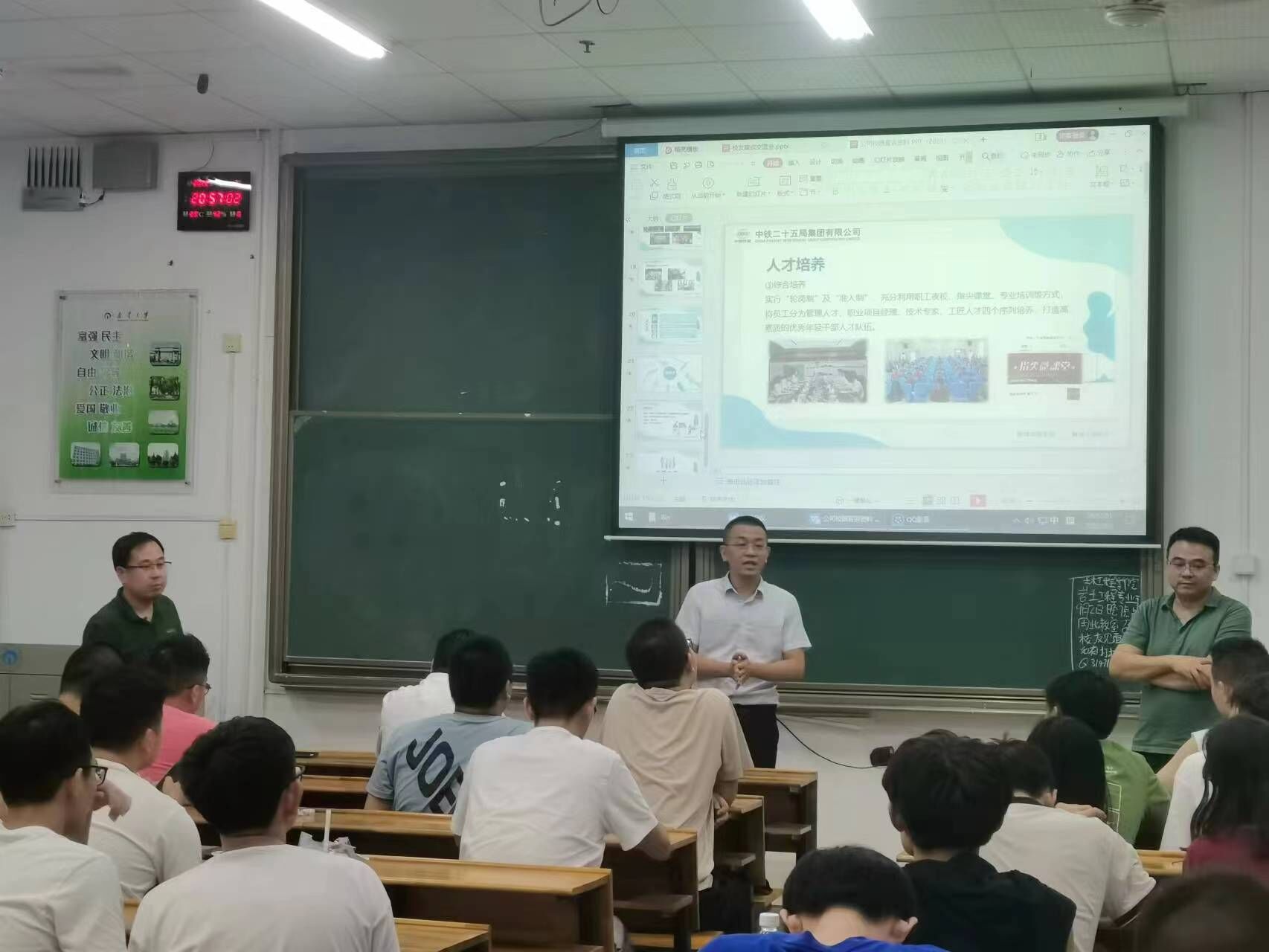 2022年9月2日晚7时30分,必赢76net官网校友座谈交流会暨中铁二十五局见面会于南华楼108教室顺利召开。本次会议邀请2006级优秀校友、中铁二十五局梅龙高铁项目副经理路腾及中铁二十五局公司代表参加,院岩土工程系主任龙慧老师、辅导员李翠新老师、岩土工程方向19级、20级、21级同学参加会议。