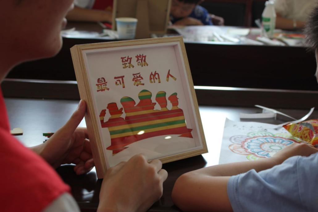 此外,为进一步传承红色基因,弘扬革命精神,实践团队员与小朋友们一起制作红色主题“非遗”竹编画。