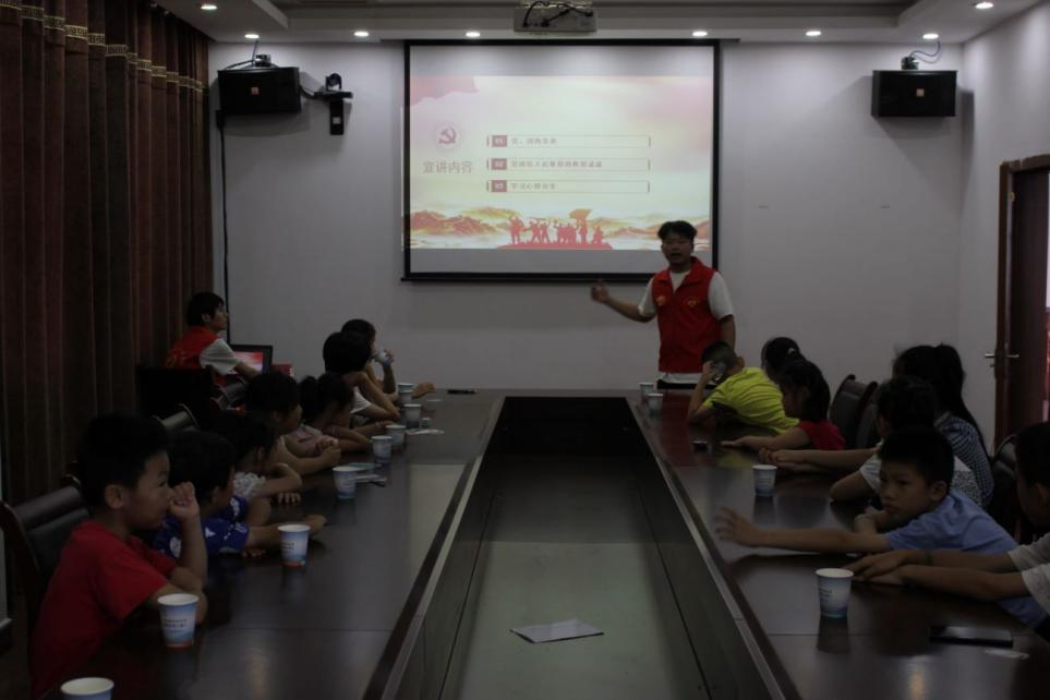 7月11日上午,必赢76net官网红色党史宣讲社会实践团来到衡阳市蒸湘区雨母山镇幸福村,组织二十余名当地青少年开展党史宣讲系列活动。
