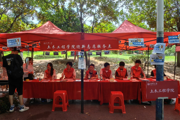 初阳方起,工作人员早已在机场、火车站等主要交通枢纽接待点严阵以待,为新生和家长提供接站服务,确保他们顺利抵达校园。在校园内部迎新点,以结构设计模型、水质检测设备、民族服饰为代表的迎新特色元素体现了学院学科特色、志愿服务和学生社团亮点。志愿者们身着红色马甲,满怀期待地迎接2024级新生的到来。